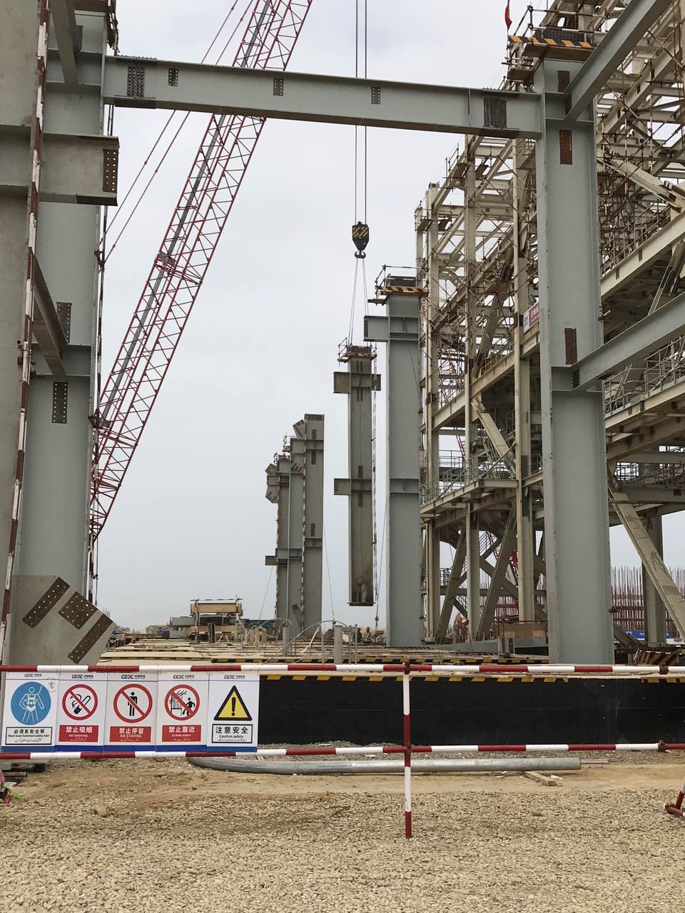 该项目进展顺利,我公司生产的第一批钢构件(906吨)已于7月10顺利清关到达工程现场,7月19日现场举行主厂房钢结构首件吊装仪式,标志着我公司承接的该电厂主厂房钢构件进入到实质性现场安装阶段。